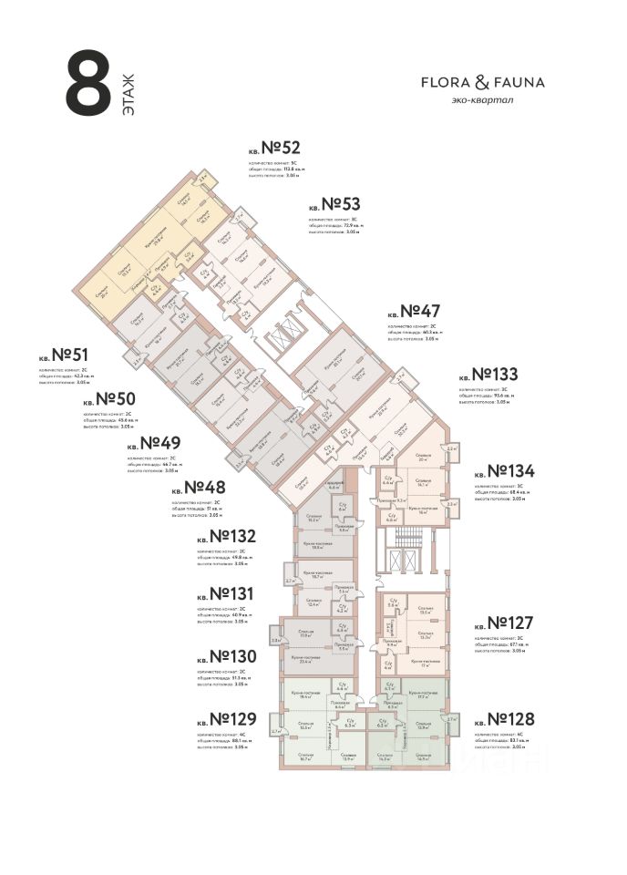 FLORA & FAUNA - это европейский архитектурный проект с просторными функциональными планировками квартир. Высота потолков 3 м даёт ощущение пространства и воздуха, а большие панорамные окна усиливают этот эффект.