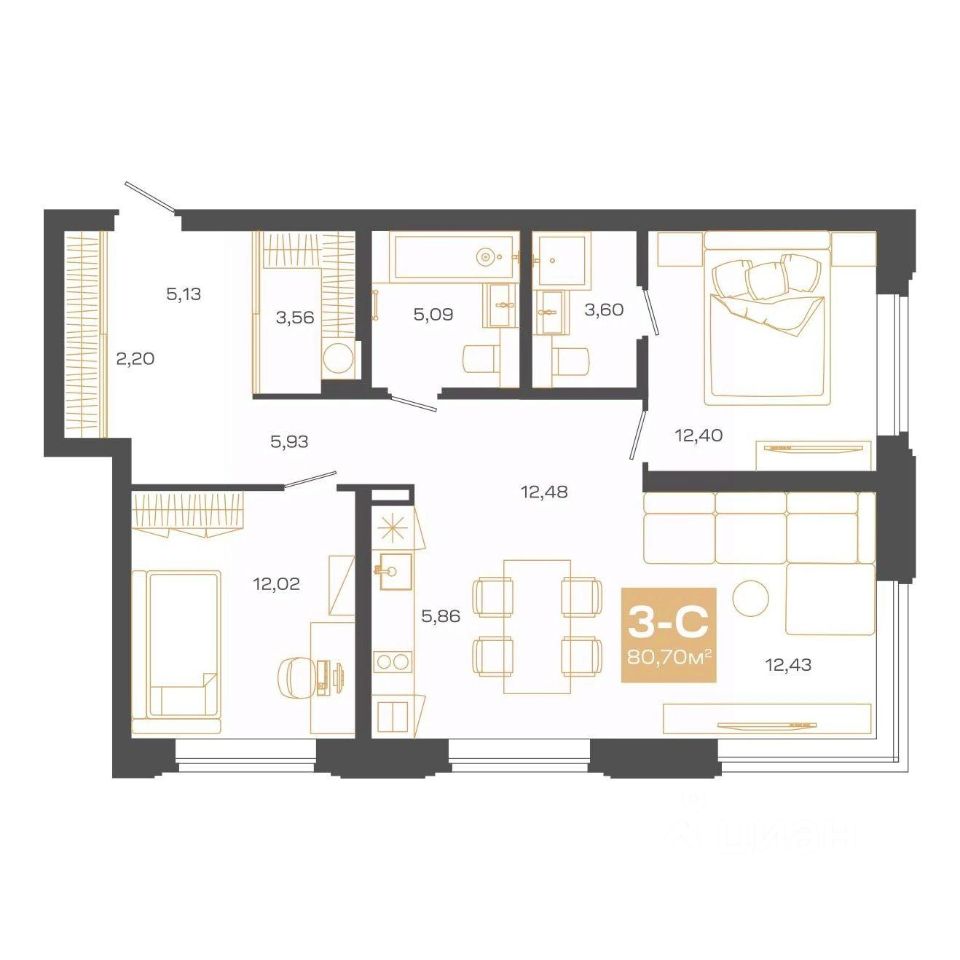 Общая площадь80,7 м2