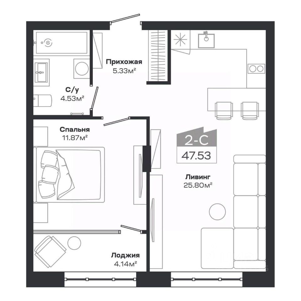 Общая площадь46,6 м2