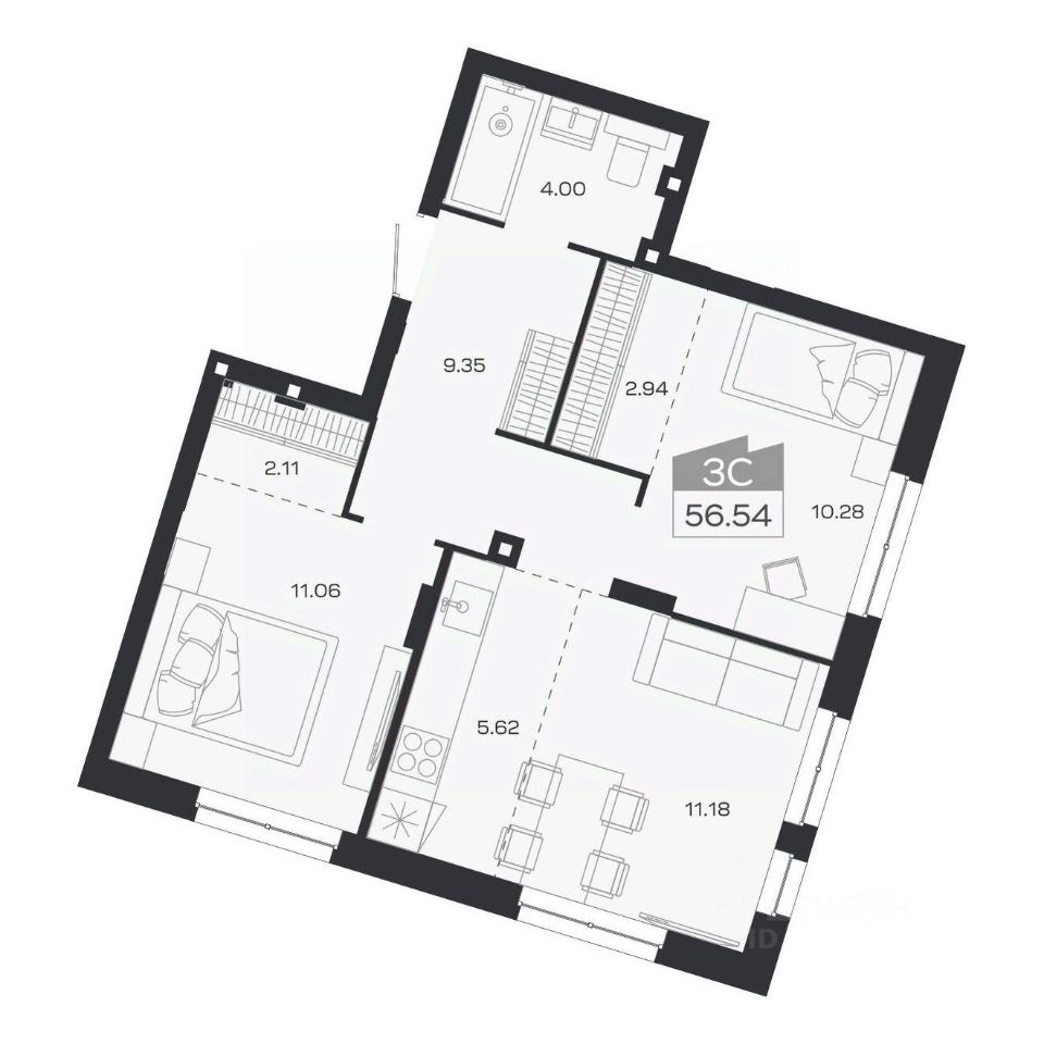 Общая площадь56,54 м2