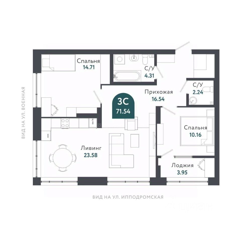 Общая площадь71,8 м2