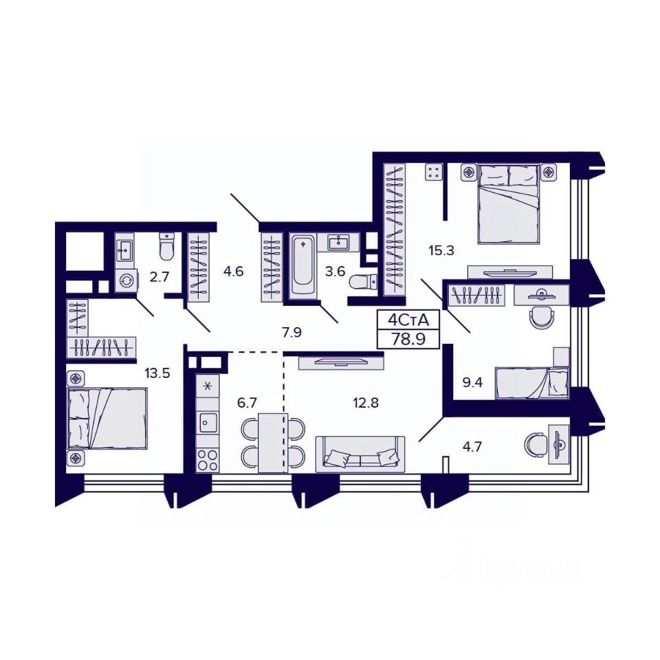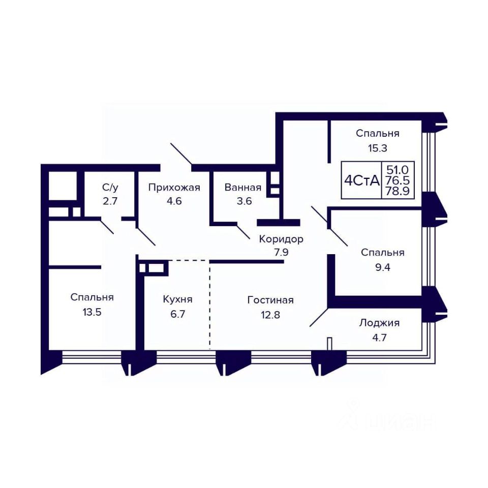 Общая площадь78,9 м2