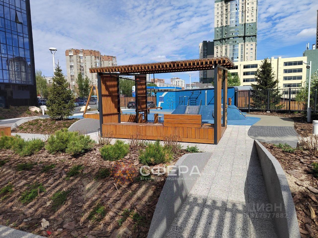 Преимущества объекта: - ультрасовременный небоскреб бизнес-класса в центре Новосибирска, - футуристичная архитектурная концепция, - высотность и большая площадь остекления, - современный дизайн лобби, входных групп, коворкинг, - ландшафтный парк, игровые пространства, зоны отдыха и занятия спортом, - для юных жителей: качели, песочницы, игровые и развивающие интерактивные комплексы, - закрытая территория комплекса, видеонаблюдение по всей территории дома и двора, система охранной сигнализации, - подземный паркинг с лифтами на жилые этажи, - контроль доступа в паркинг, - зарядка для автомобилей, - посты МОЙКИ колес и ПОДКАЧКИ шин.