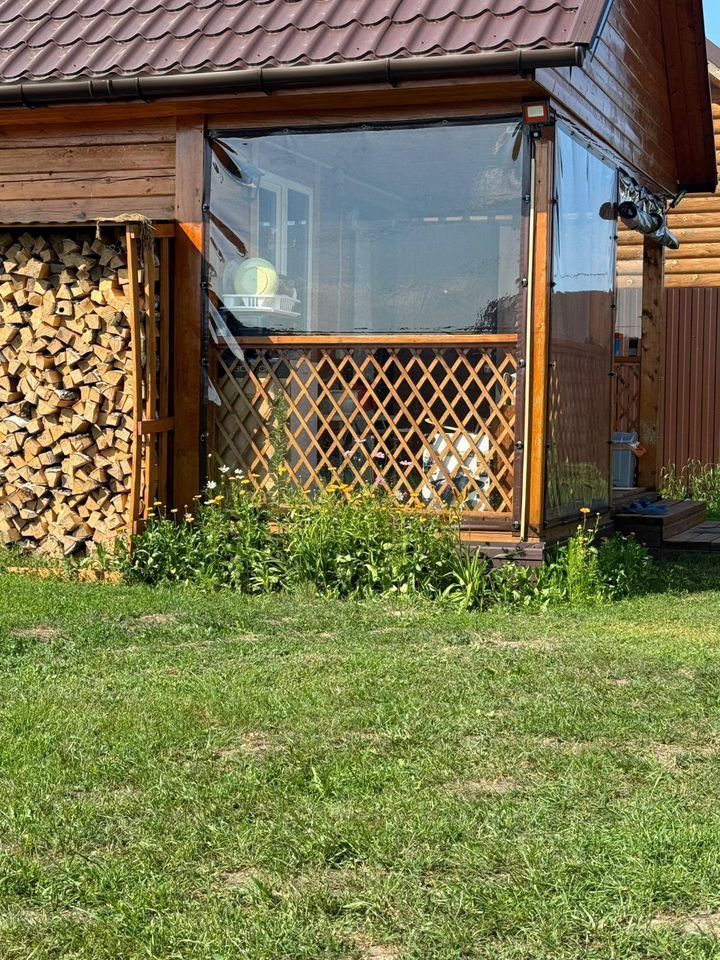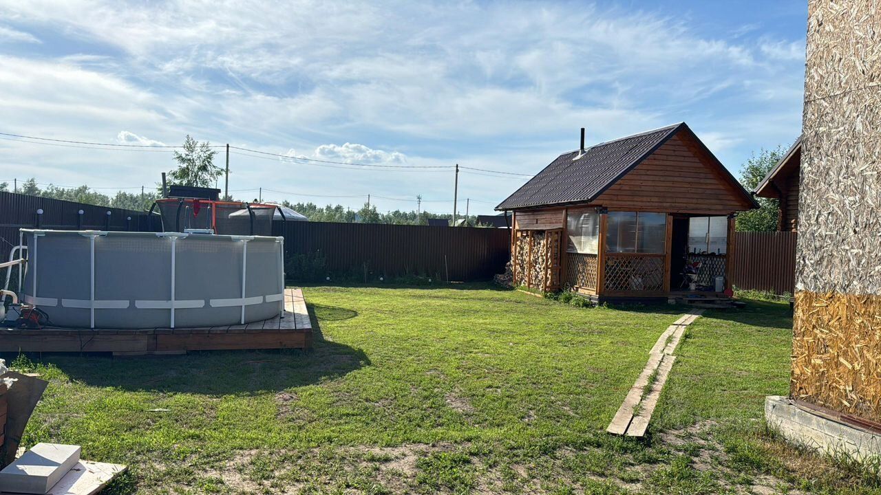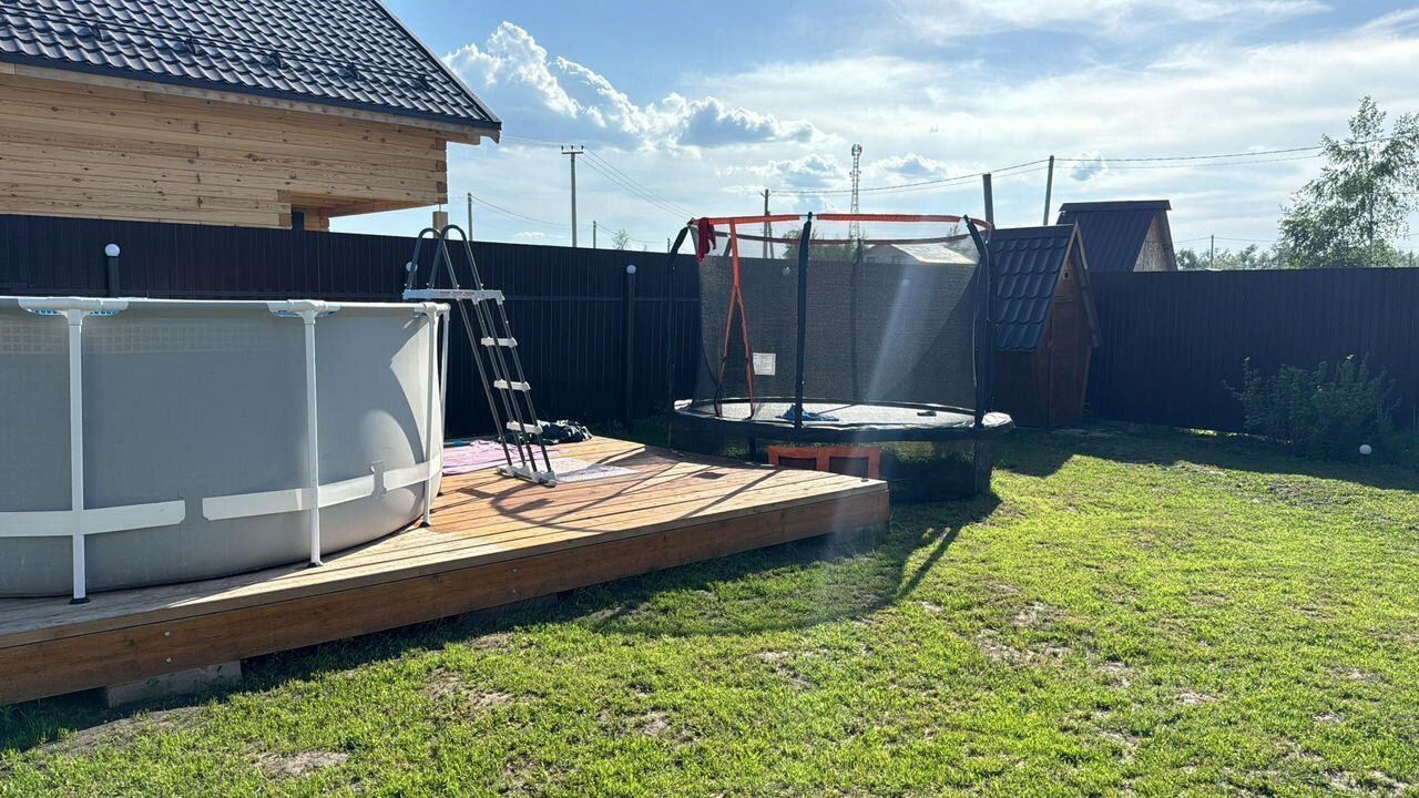 Участок в собственности. Дом каркасный, нужно доделывать, стоит только каркас крыша окна дверь, баня готова полностью, скважина, канализация, получено разрешение на подключение газа, газ идет за забором, бассейн, батут, оставим. Забор вокруг, откатные ворота. Зимой дороги чистятся, можно жить круглый год.