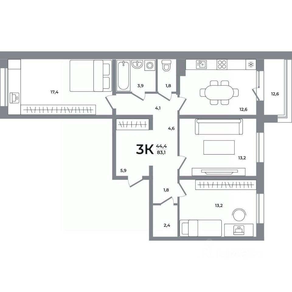 123 792 ₽/м²