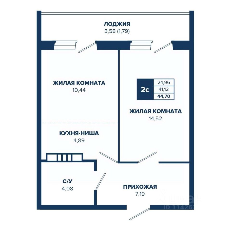 Общая площадь44,7 м2