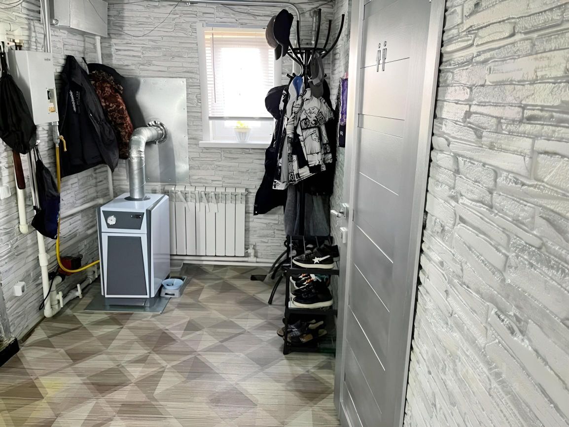 Центральная канализация, центральное водоснабжение, отопление газовое + электрическое. Свет 380 вт, проводка новая.