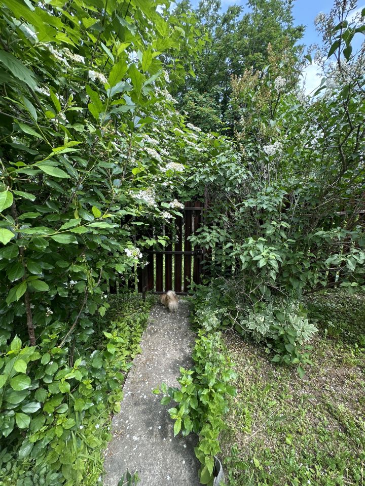 Также есть большая теплица, построенная в прошлом году. Территория ухоженная, засажена молодыми деревьями и кустарниками: яблони, черемуха, туя, гортензии, пионы, смородина (черная и красная), жимолость, крыжовник и многое другое.