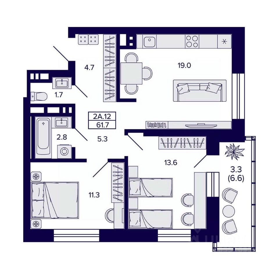 Общая площадь61,7 м2