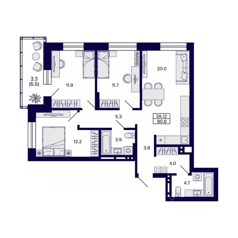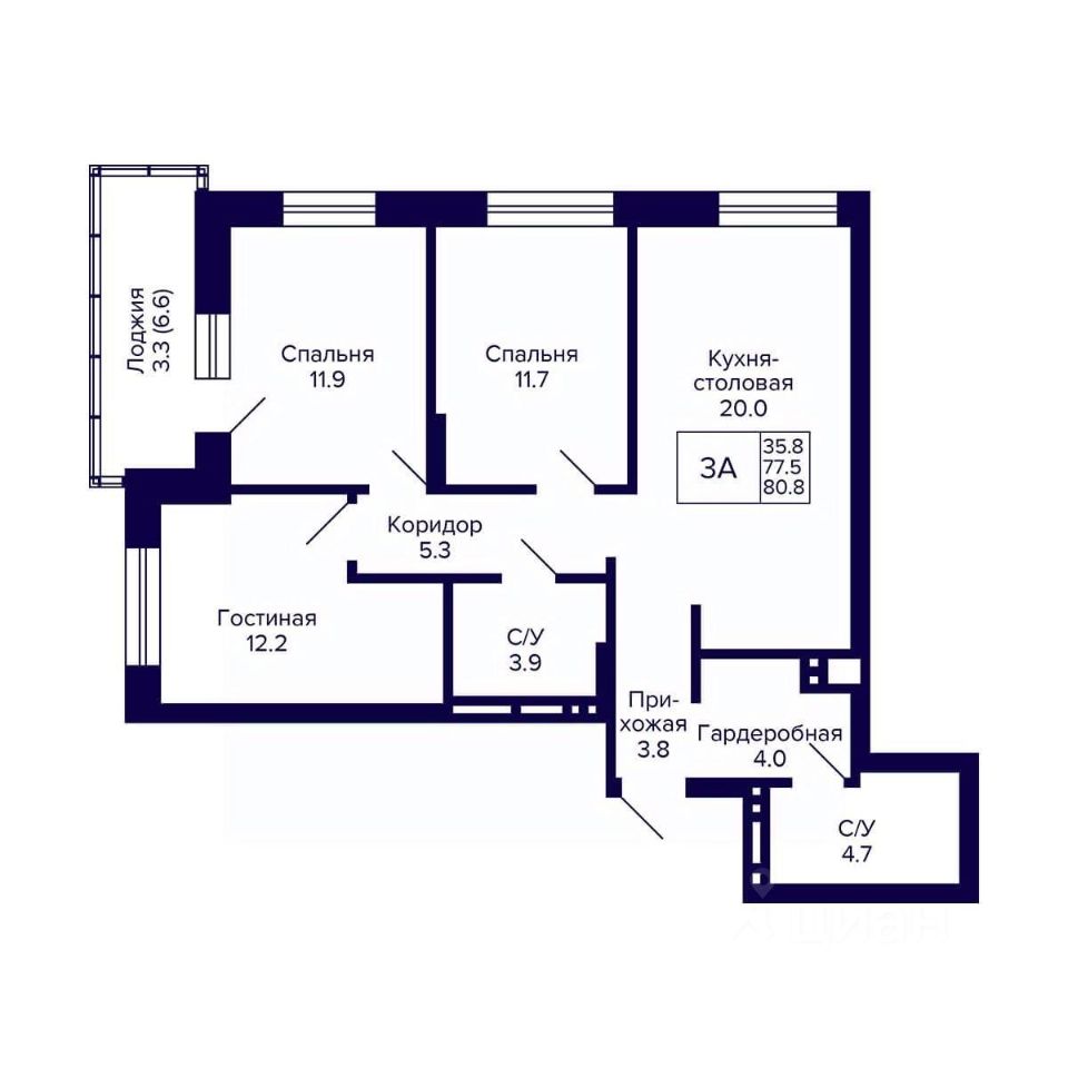 Общая площадь80,8 м2