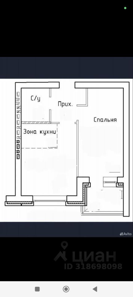Квартира представляет 2-х комнатную евростудию: кухня - гостиная и просторная спальня.