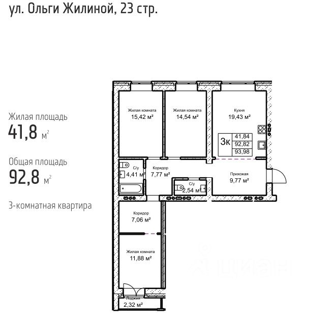 продам 3-к, Ольги Жилиной, 2322 500 000 ₽