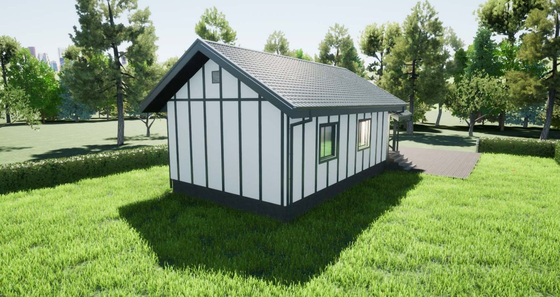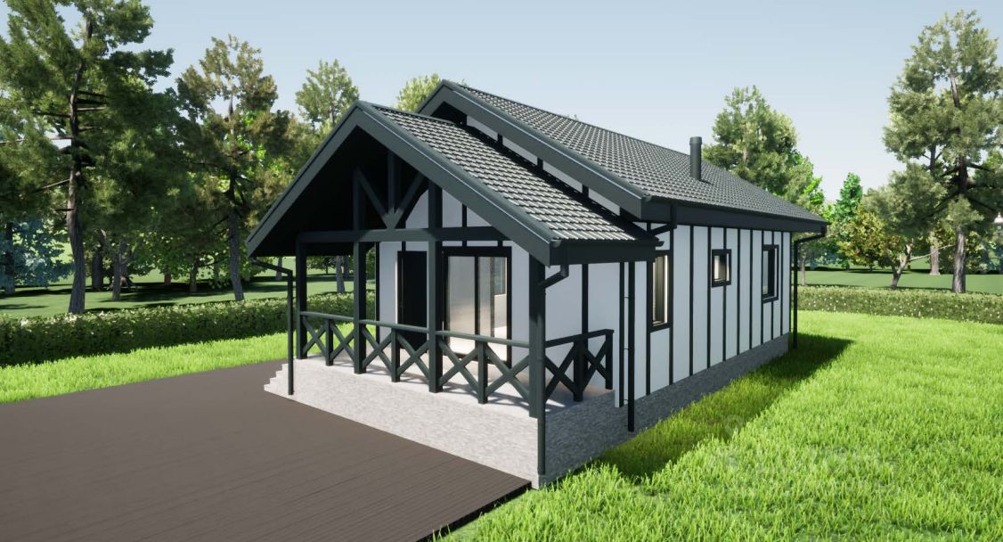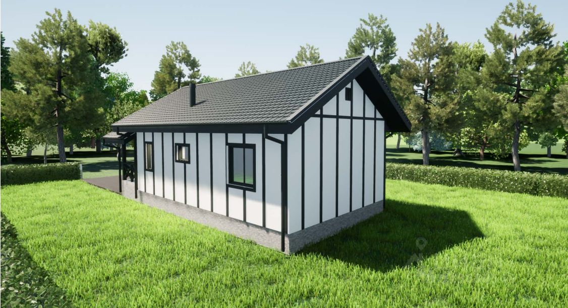 В базовой комплектации коттедж строится в элегантном стиле фахверк, однако, за дополнительную плату, вы можете выбрать любое архитектурное решение, отражающее вашу индивидуальность будь то лаконичный под брус, сдержанный скандинавский или современный барнхаус.