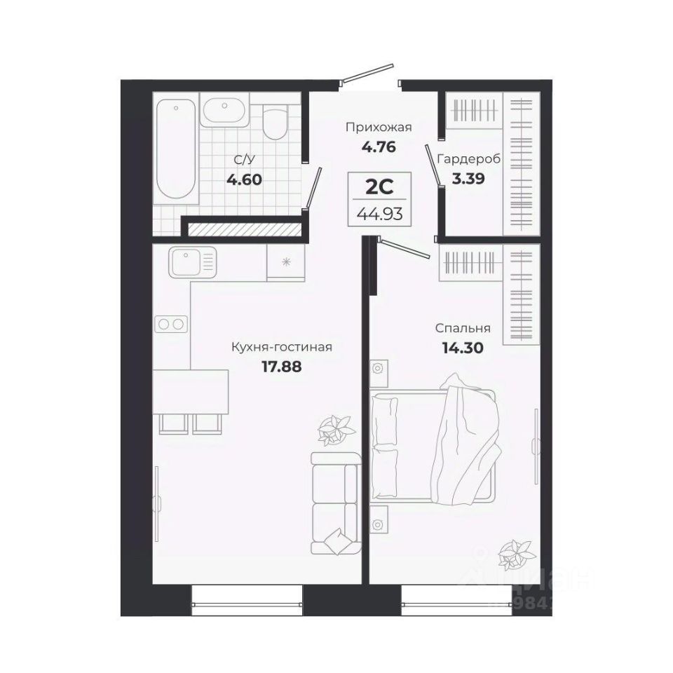 Общая площадь44,93 м2