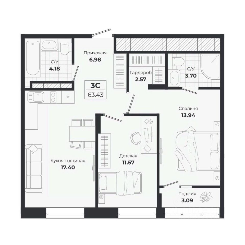 Продаётся 3-комнатная квартира в строящемся доме (Дом 10, 4 этап), срок сдачи: IV-кв. 2027, общей площадью 60.34 кв.м., на 8 этаже. Расположение, транспортная доступностьНовый жилой комплекс комфорт-класса ''Город-парк Ясный Берег'' строится на левом берегу реки Обь, но при этом совсем недалеко от центра Новосибирска. Новый микрорайон расположится рядом с проездом Энергетиков, который переходит в Дмитровский мост. Добраться до самого центра мегаполиса совсем несложно: дорога на автомобиле займет всего десять минут в зависимости от загруженности магистралей (расстояние до исторического центра чуть больше 4 км).На общественном транспорте до центральных районов можно доехать за двадцать пять минут (время в пути зависит и от дорожного трафика, от выбранного маршрута и точного места назначения). В шаговой доступности от ЖК ''Город-парк Ясный Берег'' расположена остановка ''Мост'', откуда курсируют автобусы и маршрутные такси в разные районы Новосибирска.Рядом с новым ЖК проходят крупнейшие транспортные артерии города Октябрьский мост, проезд Энергетиков, улицы Ватутина, Котовского, Станционная и Немировича-Данченко, так что добраться в любую точку города не составит труда как на машине, так и на общественном транспорте.ИнфраструктураЛенинский район, где возводится ''Ясный Берег'', считается престижным, так что уже сейчас новые владельцы квартир города-парка смогут наслаждаться комфортной городской жизнью в тихом микрорайоне. В шаговой доступности: детские садики, общеобразовательные школы, магазины, аптеки, сетевые супермаркеты, кафе, аптеки, медицинские учреждения. За пять минут можно доехать до строительного гипермаркета ''Леруа Мерлен''. Вокруг много мест для отдыха, занятий спортом, прогулок с детьми.Впрочем, согласно концепции, в недалеком будущем жителям ''Города-парка Ясный Берег'' не понадобится часто покидать пределы любимого микрорайона, поскольку новый жилой комплекс будет представлять собой ''город в городе''. На территории ЖК будет большой парк с пешеходными и велосипедными дорожками, местами для отдыха, игровыми зонами. Отличительной особенностью станет детская гоночная трасса точный аналог сочинской ''Формулы-1''.На территории ''Города-парка Ясный Берег'' построят детские площадки с современным игровым оборудованием, школы, развивающие секции и кружки, детские сады (один построен и уже работает). В городе-парке будут и огороженные места для курения, и территории для прогулок с домашними питомцами. В микрорайоне предусмотрено много зон с wi-fi.Надежность застройщикаЗастройщиком проекта является СК ''Аква Сити'', основанная в 2012 году. Генеральным подрядчиком компания ''Метаприбор''. В 2016 году ''Метаприбор'' занял первое место в области по объемам введенного в эксплуатацию жилья (благодаря своевременной сдаче двух корпусов в ЖК ''Город-парк Ясный Берег'').Эти компании осуществляют полный цикл строительства от выбора участков под застройку до внутренней отделки, ввода в эксплуатацию и благоустройству территории новых ЖК.И ''Аква Сити'', и ''Метаприбор'' имеют х