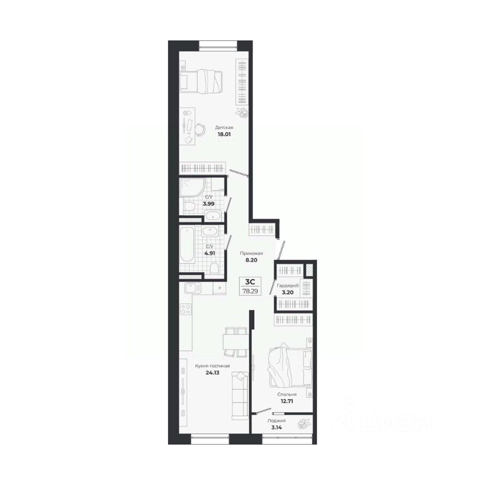 Продаётся 3-комнатная квартира в строящемся доме (Дом 10, 4 этап), срок сдачи: IV-кв. 2027, общей площадью 75.15 кв.м., на 6 этаже. Расположение, транспортная доступностьНовый жилой комплекс комфорт-класса ''Город-парк Ясный Берег'' строится на левом берегу реки Обь, но при этом совсем недалеко от центра Новосибирска. Новый микрорайон расположится рядом с проездом Энергетиков, который переходит в Дмитровский мост. Добраться до самого центра мегаполиса совсем несложно: дорога на автомобиле займет всего десять минут в зависимости от загруженности магистралей (расстояние до исторического центра чуть больше 4 км).На общественном транспорте до центральных районов можно доехать за двадцать пять минут (время в пути зависит и от дорожного трафика, от выбранного маршрута и точного места назначения). В шаговой доступности от ЖК ''Город-парк Ясный Берег'' расположена остановка ''Мост'', откуда курсируют автобусы и маршрутные такси в разные районы Новосибирска.Рядом с новым ЖК проходят крупнейшие транспортные артерии города Октябрьский мост, проезд Энергетиков, улицы Ватутина, Котовского, Станционная и Немировича-Данченко, так что добраться в любую точку города не составит труда как на машине, так и на общественном транспорте.ИнфраструктураЛенинский район, где возводится ''Ясный Берег'', считается престижным, так что уже сейчас новые владельцы квартир города-парка смогут наслаждаться комфортной городской жизнью в тихом микрорайоне. В шаговой доступности: детские садики, общеобразовательные школы, магазины, аптеки, сетевые супермаркеты, кафе, аптеки, медицинские учреждения. За пять минут можно доехать до строительного гипермаркета ''Леруа Мерлен''. Вокруг много мест для отдыха, занятий спортом, прогулок с детьми.Впрочем, согласно концепции, в недалеком будущем жителям ''Города-парка Ясный Берег'' не понадобится часто покидать пределы любимого микрорайона, поскольку новый жилой комплекс будет представлять собой ''город в городе''. На территории ЖК будет большой парк с пешеходными и велосипедными дорожками, местами для отдыха, игровыми зонами. Отличительной особенностью станет детская гоночная трасса точный аналог сочинской ''Формулы-1''.На территории ''Города-парка Ясный Берег'' построят детские площадки с современным игровым оборудованием, школы, развивающие секции и кружки, детские сады (один построен и уже работает). В городе-парке будут и огороженные места для курения, и территории для прогулок с домашними питомцами. В микрорайоне предусмотрено много зон с wi-fi.Надежность застройщикаЗастройщиком проекта является СК ''Аква Сити'', основанная в 2012 году. Генеральным подрядчиком компания ''Метаприбор''. В 2016 году ''Метаприбор'' занял первое место в области по объемам введенного в эксплуатацию жилья (благодаря своевременной сдаче двух корпусов в ЖК ''Город-парк Ясный Берег'').Эти компании осуществляют полный цикл строительства от выбора участков под застройку до внутренней отделки, ввода в эксплуатацию и благоустройству территории новых ЖК.И ''Аква Сити'', и ''Метаприбор'' имеют х