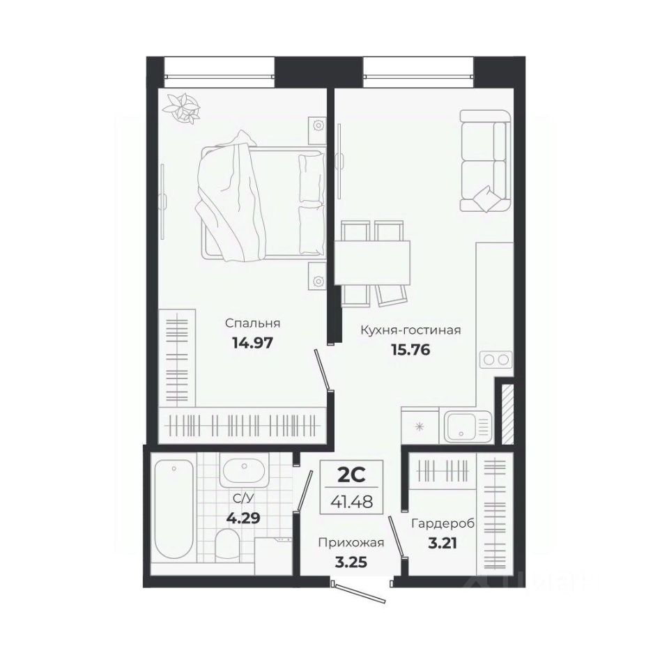 Общая площадь41,48 м2