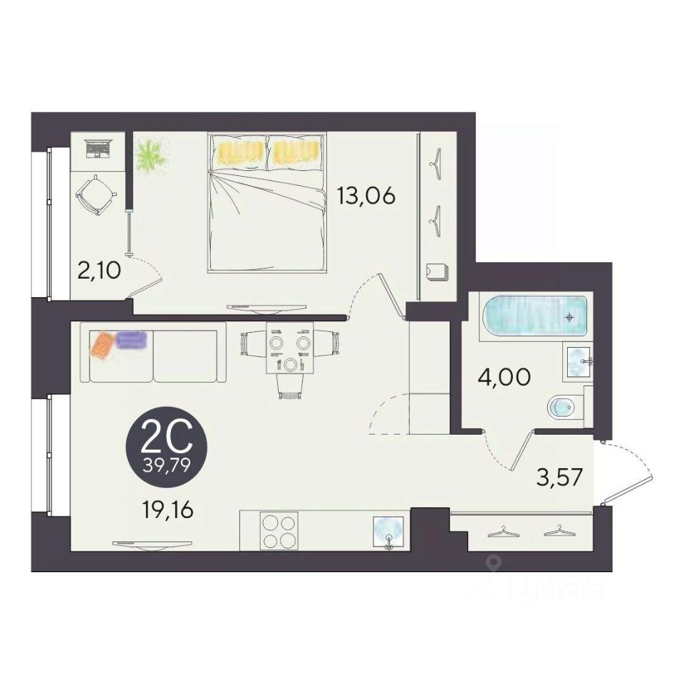 Общая площадь39,79 м2