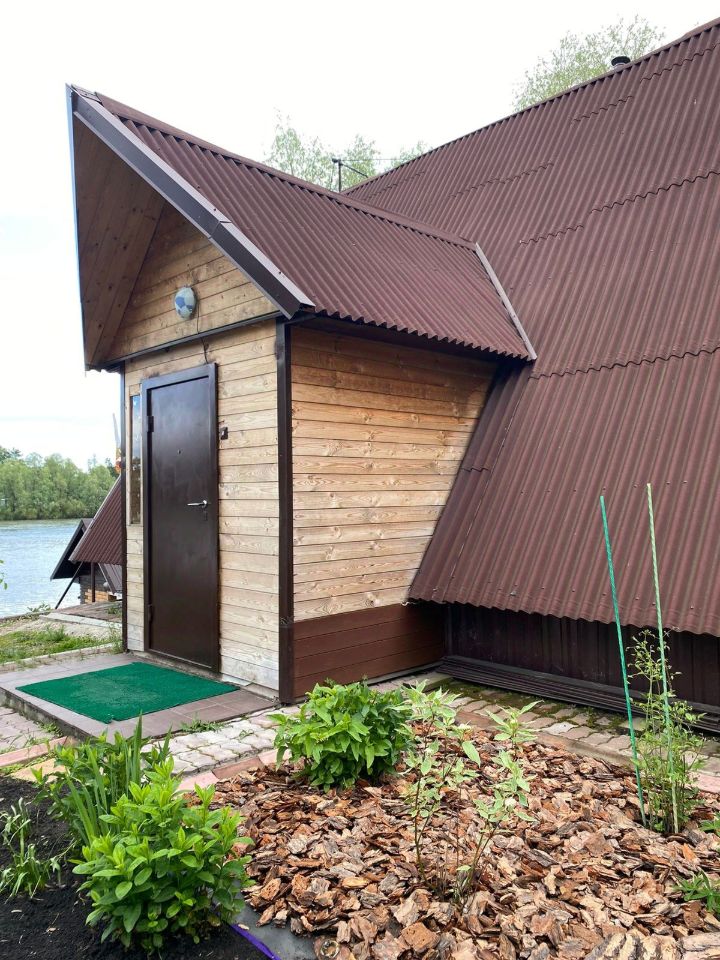 Продается новый небольшой каркасный дом в стиле шале с выходом на берег. Дом благоустроенный, ванна, санузел, теплые полы. Отопление от электричества. Есть веранда, гараж, баня. Банька на берегу реки, спуск к реке обустроен. Газ рядом можно провести в дом по желанию. Можно обустроить для жилья второй этаж, такое было запланировано при постройке. Чистая продажа, один взрослый собственник.