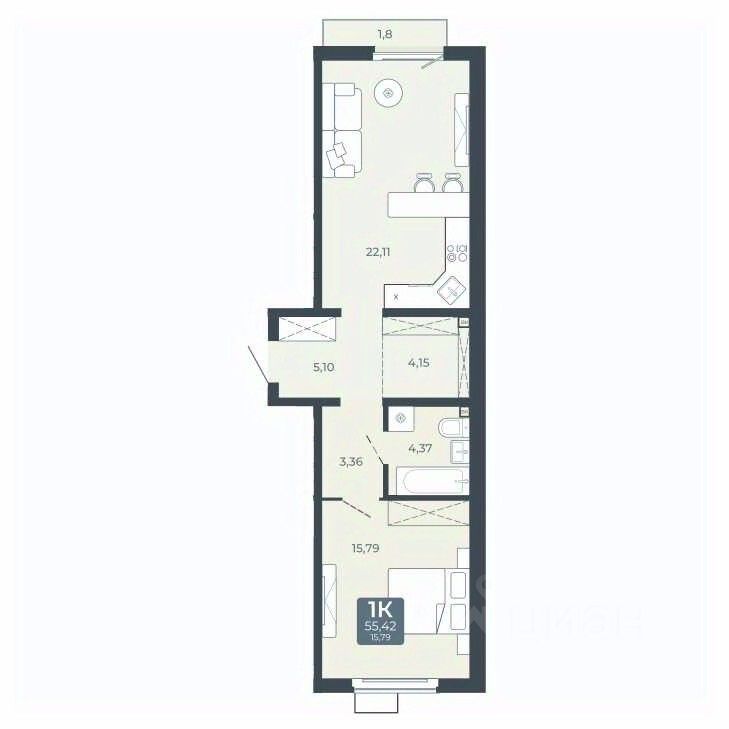 Общая площадь55,42 м2