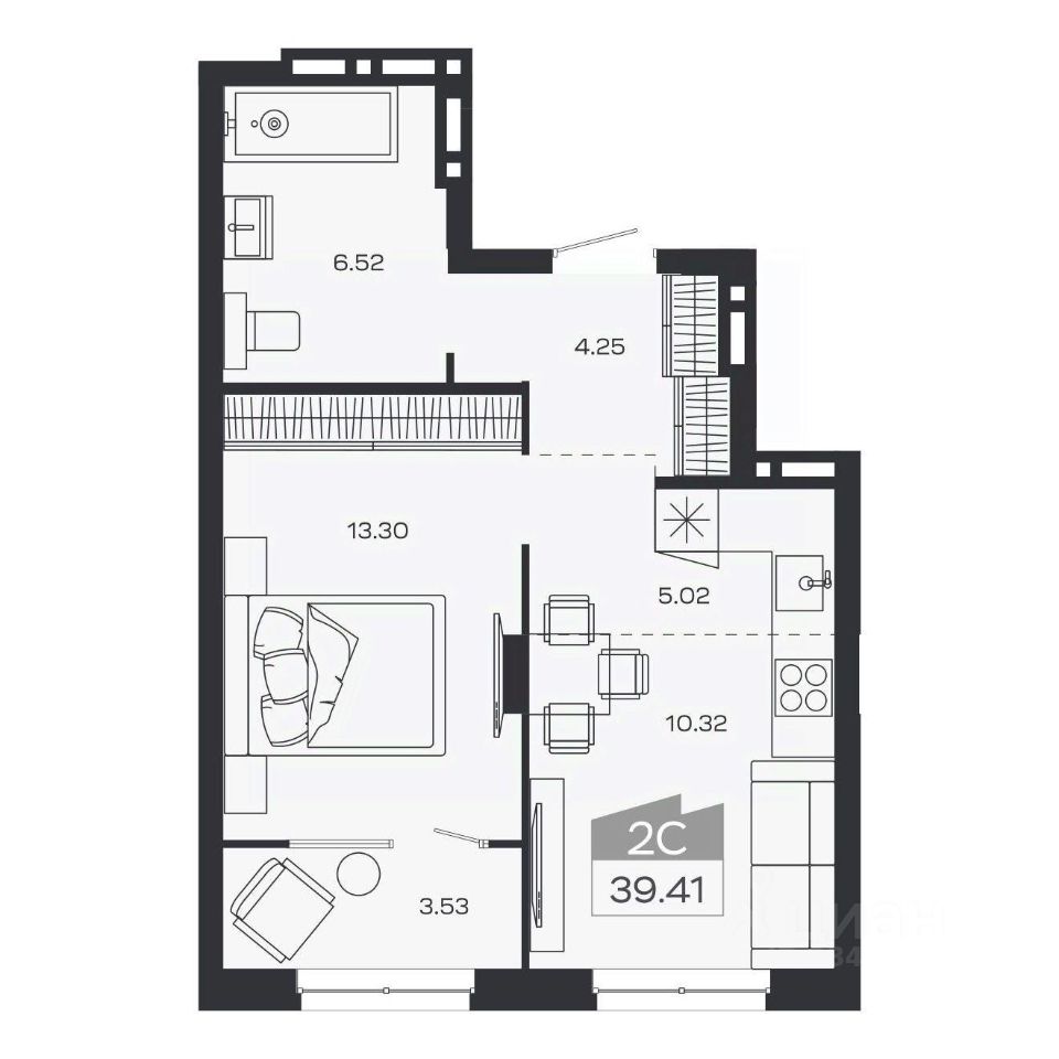 Общая площадь39,41 м2
