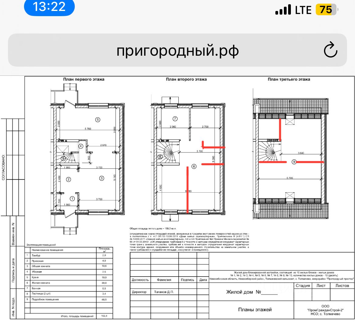 Таунхаус + земля (оформляется двумя разными договорами) Три этажа по 53,3 кв.м. Единственные 3 дома в Пригородном просторе-1 с двухскатной крышей. За счет чего третий этаж полноценно используемый по всей площади и с высотой в коньке 4.2 м