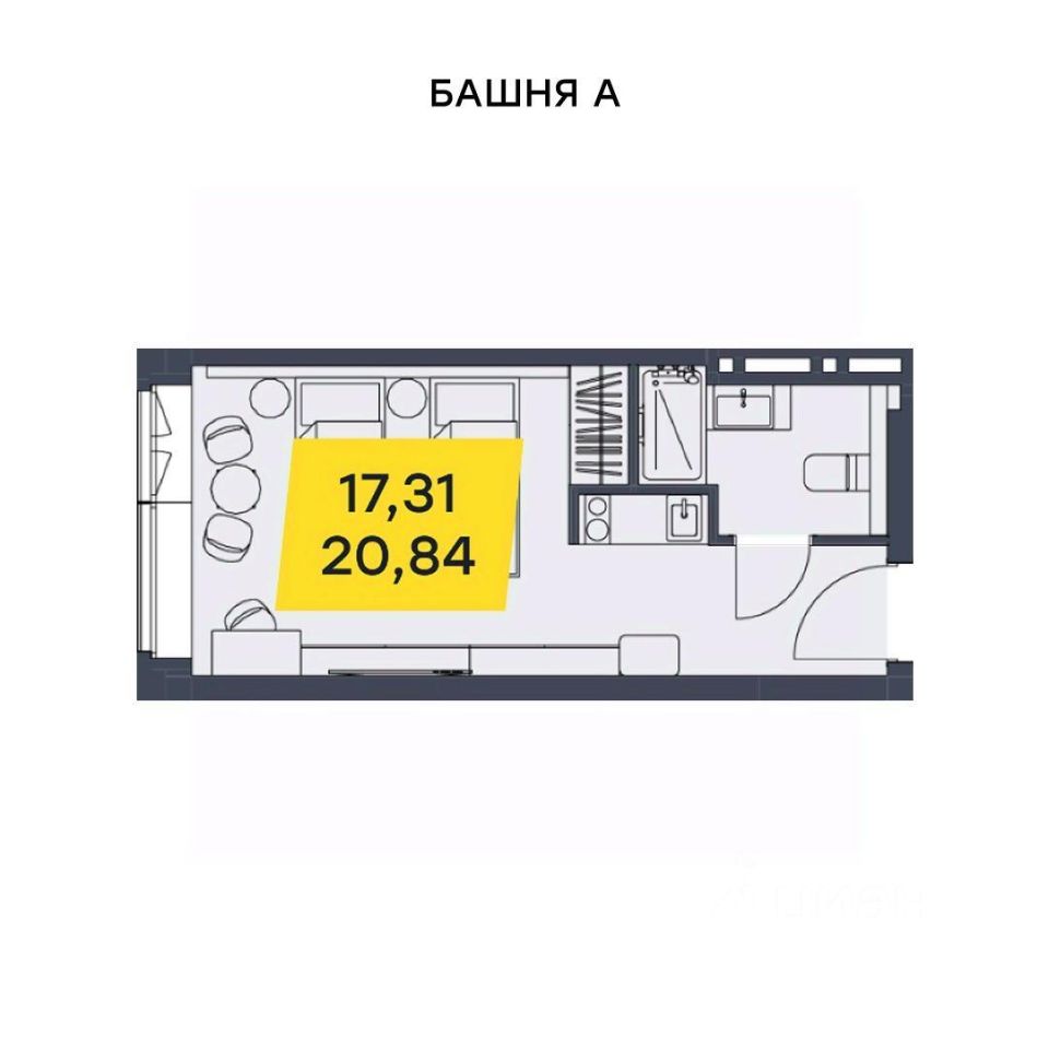 Общая площадь20,84 м2