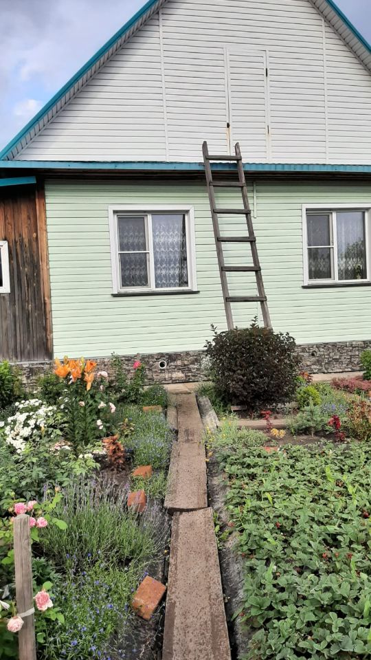 Продам дом. Три большие комнаты, кухня, коридор, санузел. Центральное водоснабжение (дополнительно имеется колодец для полива), слив в яму. На участке имеются подсобные постройки, баня. Посажены плодоносные кустарники и деревья (смородина черная и красная, малина, ирга, рябина, 2 яблони). Улица асфальтирована, напротив участка остановка общественного транспорта, в пешей доступности река. В доме живут по настоящее время, дом и участок ухожены, ко всему относились с любовью.