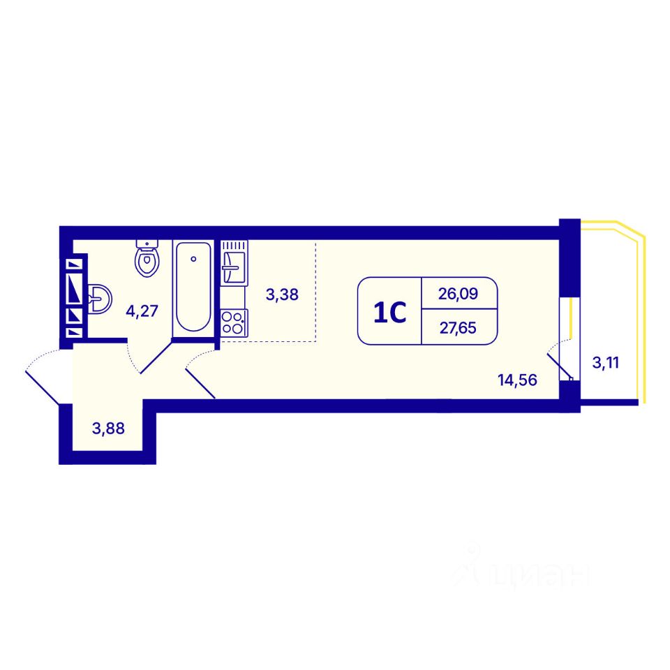 продам 1-к, Аникина, 64 830 000 ₽