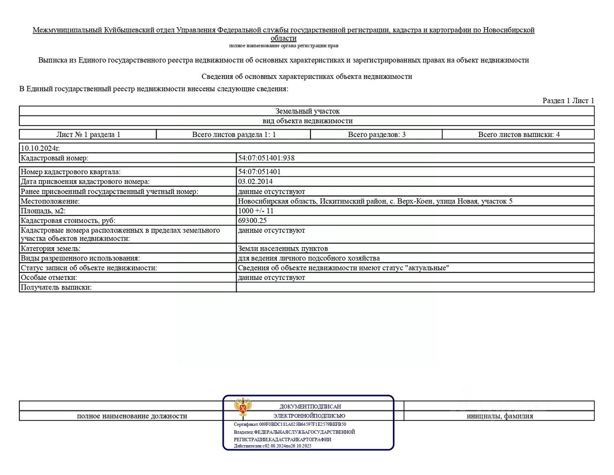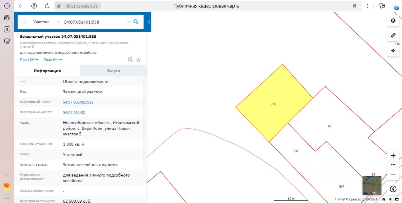 • Кадастровый номер: 54:07:051401:938