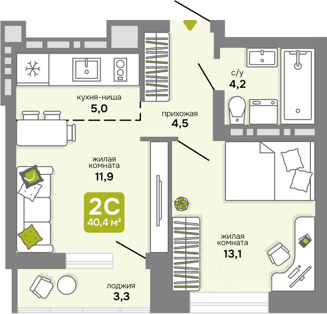 Общая площадь40,4 м2