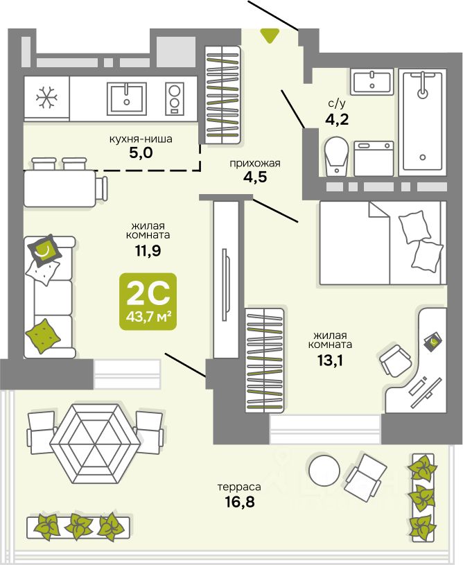 Общая площадь43,7 м2