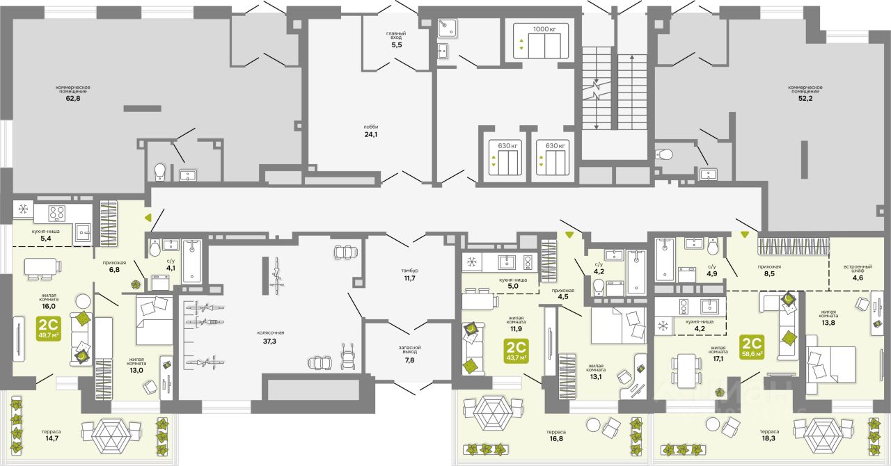 Дизайнерские холлы с удобной зоной ожидания Входные группы с панорамным остеклением и высокими потолками до 4 м Тёплый тамбур со скамейкой для сумок Крючки для сумок у дверей Устройство для чистки обуви в холле Дог-боксы с пакетами для уборки за животными.