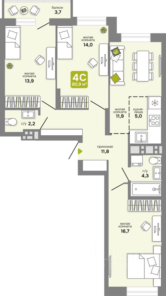 Общая площадь80,9 м2