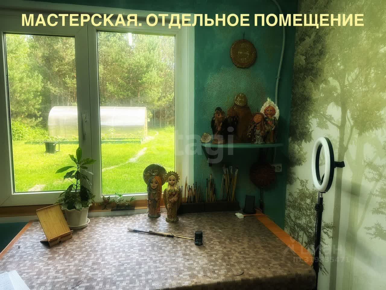 На территории расположены теплица, детский домик из бруса и летний туалет, также есть отдельное помещение 36 кв. м, которое сейчас используется как художественная мастерская, но может служить гостевой постройкой. Просторный гараж на 4 автомобиля (90 кв. м) оснащен двумя автоматическими воротами.