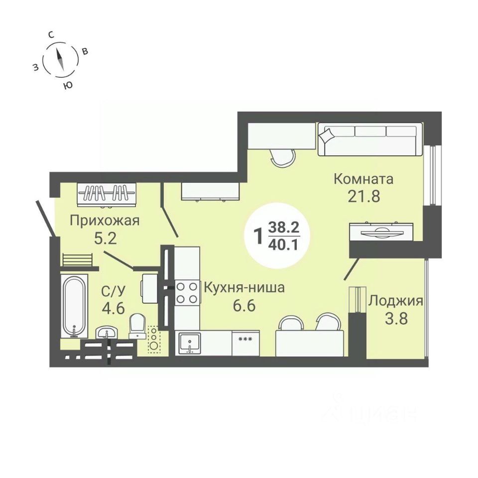 Общая площадь40,3 м2