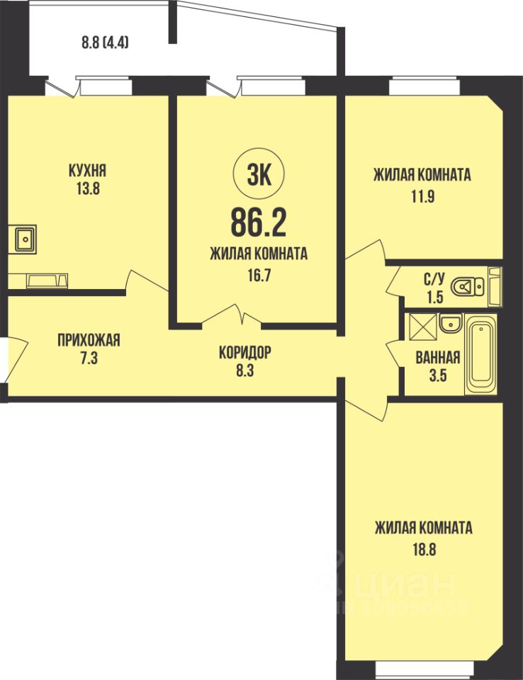 Продаётся 3-комнатная квартира в строящемся доме (Дом 908), срок сдачи: IV-кв. 2026, общей площадью 86.2 кв.м., на 8 этаже. Квартал поколений ''Династия'' - это проект, который давно ждали. Именно здесь, в 10 минутах езды до площади Калинина, на территории двух районов Новосибирска - Калининского и Заельцовского - расположился комплекс, где воплощается в жизнь накопленный за 30 лет существования компании градостроительный опыт. Это 16 домов в двух минутах ходьбы от Красного проспекта с закрытой территорией, с большим количеством зелени и собственной парковой зоной. Для детей Признак особенно высокого уровня микрорайона - наличие там многопрофильных детских комплексов с различными секциями. Мы даем возможность вести спортивный образ жизни, выбирая то, что вам по душе: 7 фитнес-клубов, 5 спортивных сооружений, крытая ледовая арена, клуб единоборств, центр фехтования, 2 бассейна. И это не говоря уже о спортивных площадках, установленных в каждом дворе! Для семьи Привилегии жильцов элитных домов теперь доступны нашим покупателям. Мы реализуем концепцию ''дворы без машин''. Плюсы идеи: безопасность, увеличенная территория комфорта, отсутствие загазованности. Здесь можно играть, заниматься спортом, совершать утренние пробежки или кататься на велосипеде. А можно просто посидеть на лавочке и отдохнуть от городской суеты.