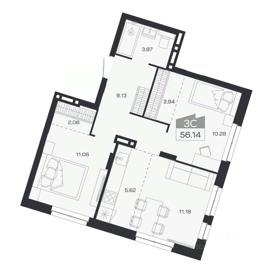 Продаётся 3-комнатная квартира в строящемся доме (Дом 2), срок сдачи: III-кв. 2026, общей площадью 56.14 кв.м., на 8 этаже. Новый жилой комплекс ''Базилик'' от застройщика ''Группа Мета'' расположен в рп. Краснообск Новосибирской области на ул. Восточная.