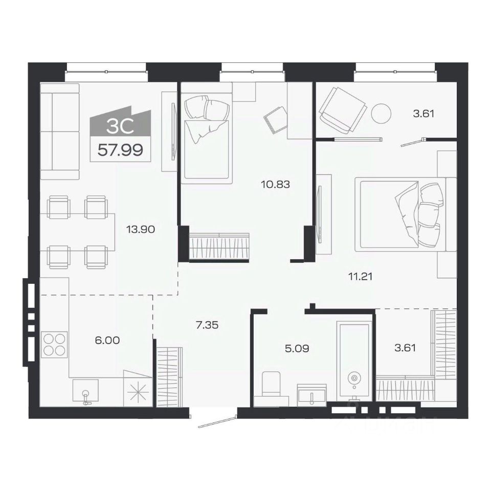 Продаётся 3-комнатная квартира в строящемся доме (Дом 2), срок сдачи: III-кв. 2026, общей площадью 57.99 кв.м., на 8 этаже. Новый жилой комплекс ''Базилик'' от застройщика ''Группа Мета'' расположен в рп. Краснообск Новосибирской области на ул. Восточная.