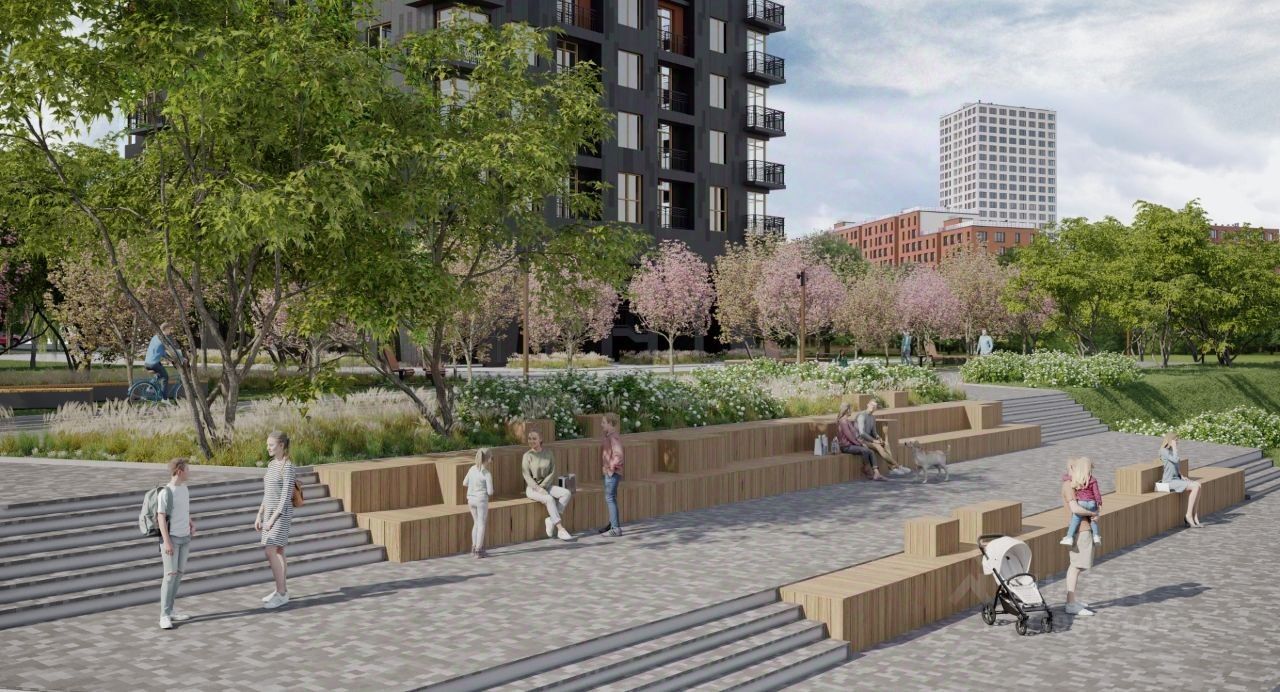 Комплекс будет состоять из нескольких домов от 11 до 25 этажей расположенных на берегу реки, с большим общим дворовым пространством и отдельно стоящей подземно-наземной парковкой.