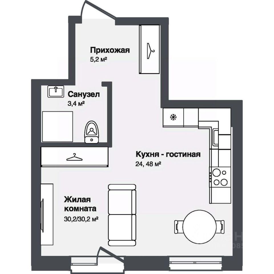 В комплексе представлены студии и 13-комнатные квартиры площадью от 30,2 до 91,9 м². Планировки продуманы для удобной жизни — просторные кухни-гостиные, террасы и панорамные окна наполняют квартиры светом.