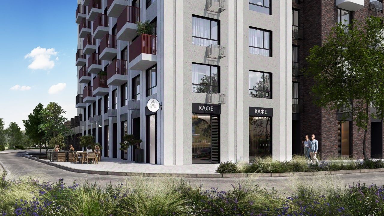 Свой приватный двор, окружённый зеленью, которая будет цвести весь год. Двор с релакс-пространством, спортивной зоной с воркаут и настольным теннисом. Детская площадка из природных материалов.