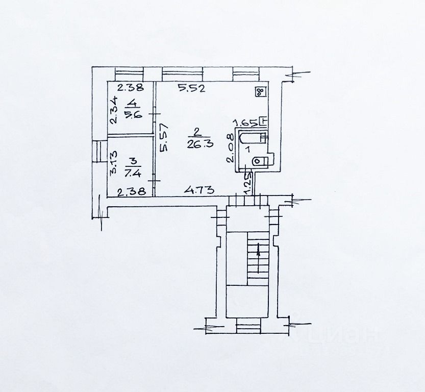 Квартира расположена на 5-м этаже пятиэтажного кирпичного дома.