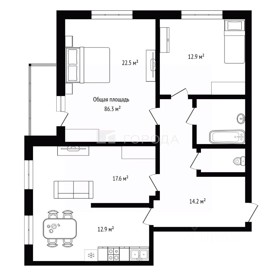 Просторные комнаты (жилая площадь — 48 кв. м) позволяют реализовать любые дизайнерские решения и идеи по зонированию. Уютная кухня площадью 12,9 кв. м станет местом для семейных ужинов и дружеских посиделок. Косметический ремонт даёт возможность новым владельцам воплотить свои мечты о дизайне интерьера без дополнительных вложений.