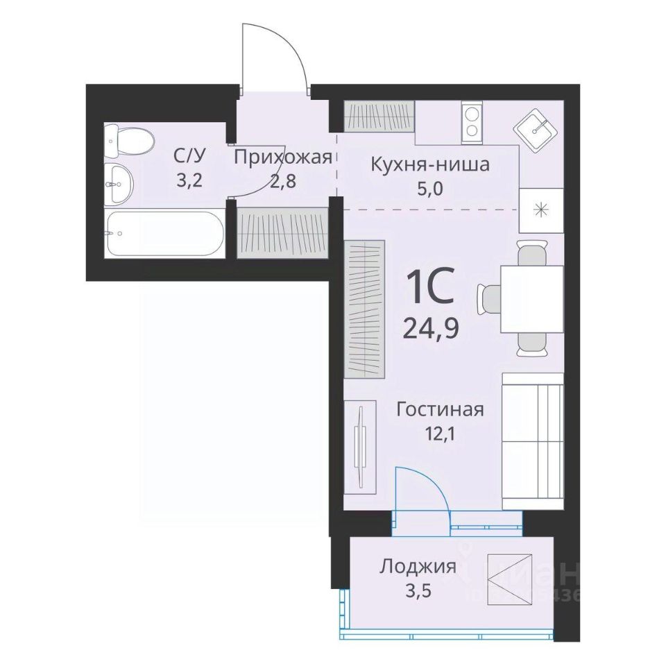 Общая площадь24,9 м2