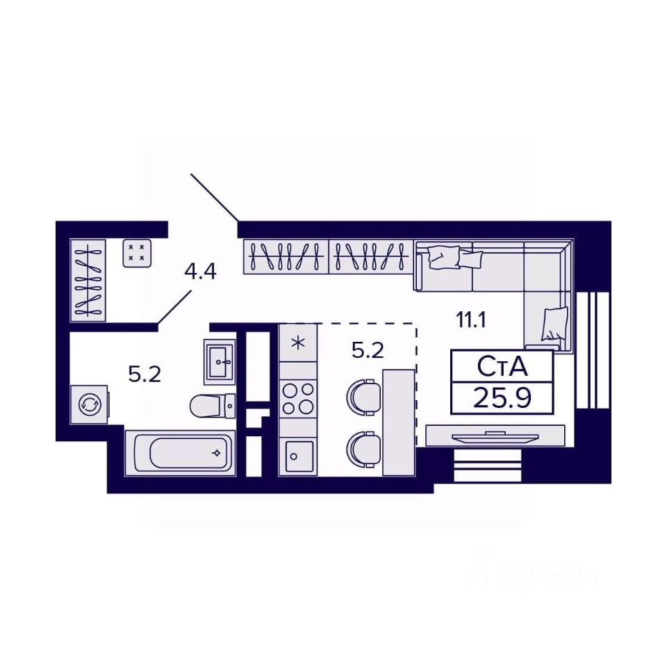Общая площадь25,9 м2