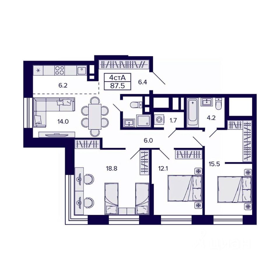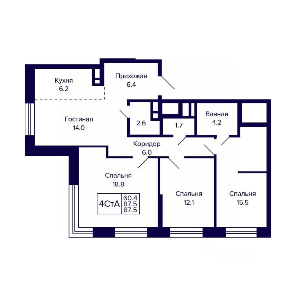 Общая площадь87,5 м2