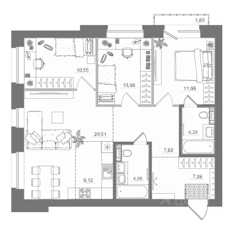 Свободные планировочные решения, чтобы каждый мог организовать своё комфортное пространство,
