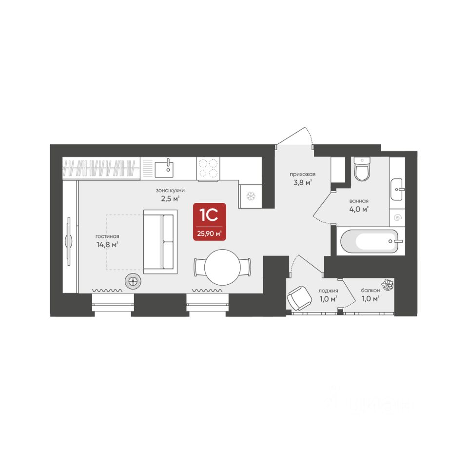 Общая площадь25,9 м2
