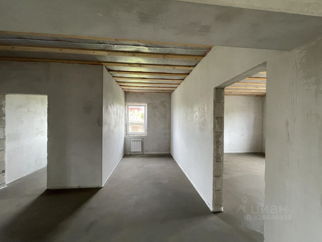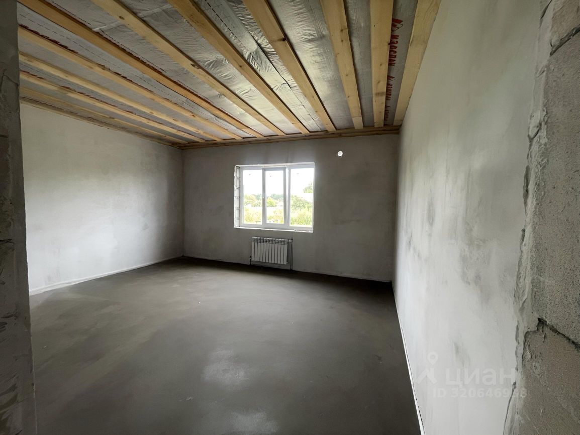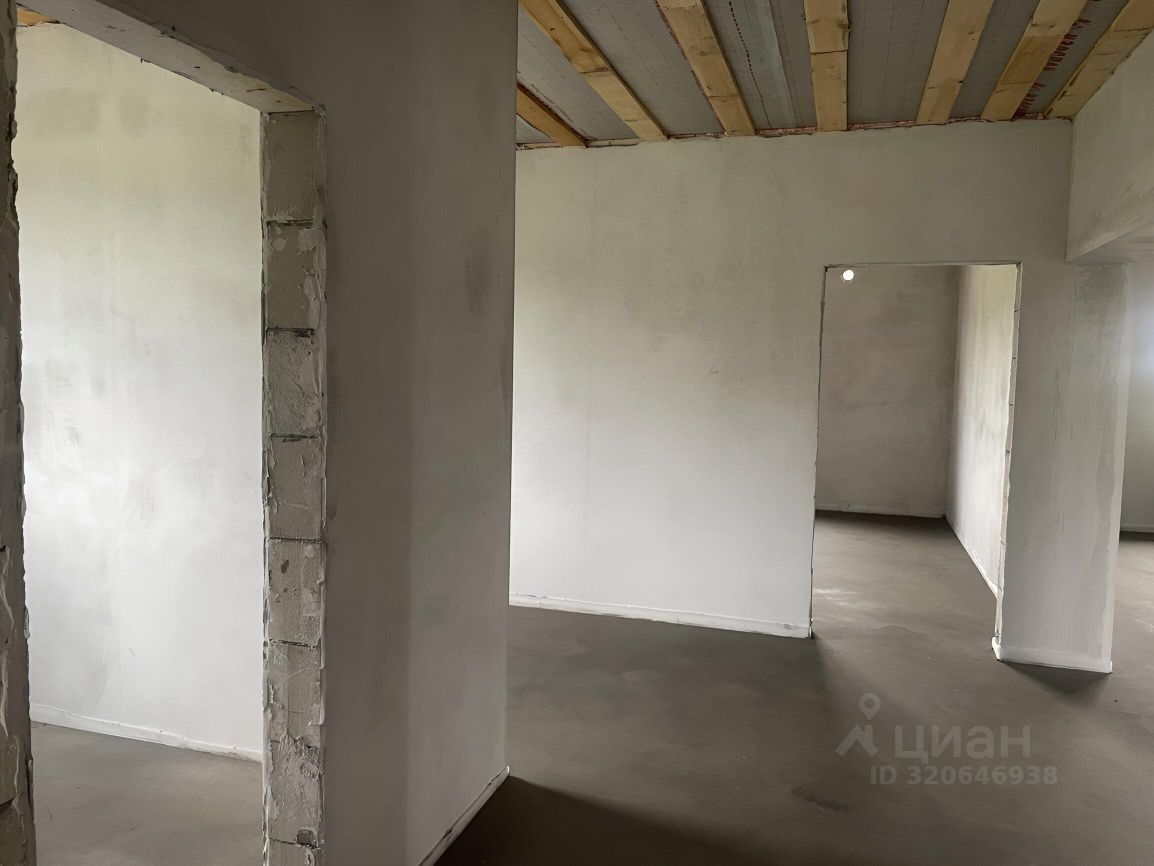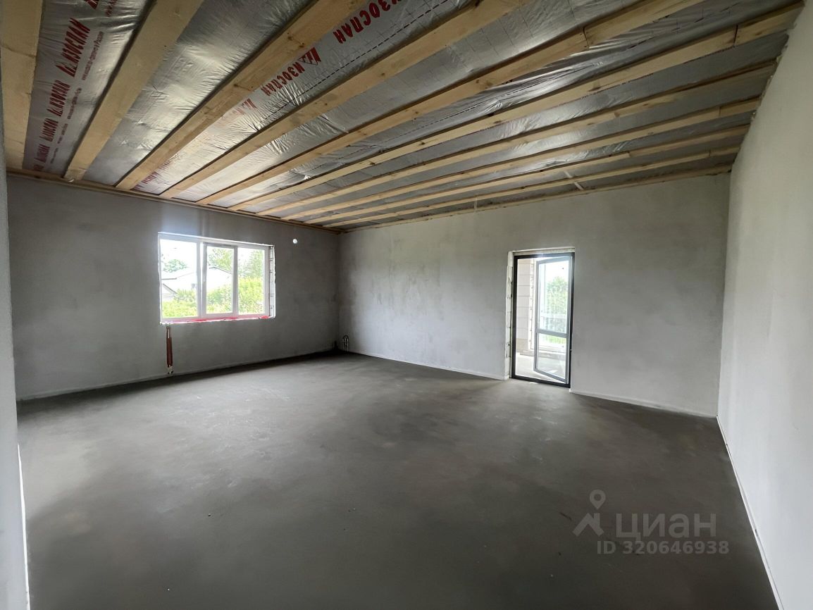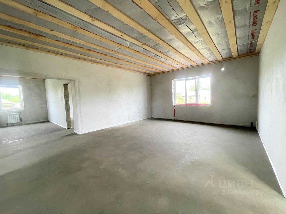 Большая кухня-гостиная 35 м2, 2 просторные спальни правильной квадратной формы по 23 м2. Внутри ровные белые отшпаклеванные стены, ровная стяжка на полу. Пол утеплен. Отопление в доме - водяной теплый пол и радиаторы.